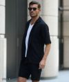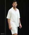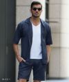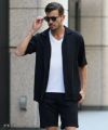 半袖シャツは、リゾートなムード溢れる開襟仕様で、