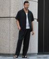 [Lサイズ]を着用しました 他コーデは【コチラ】 余裕のあるサイズ感でした。シャツの着丈はお尻が隠れ、袖丈は肘上指2本分あたりです。ボックスシルエットに近いので、余裕のある着用感を楽しめます。パンツの丈はギリギリかかとで踏まないあたりで、ウエストは拳一つ半以上の余裕があります。全体的にゆったりとしていますが、そういう仕様なので問題はないです。ヌケ感を出すならLサイズ、程よくすっきりさせたいならMサイズをおすすめします。