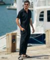 [Lサイズ]を着用しました 他コーデは【コチラ】 ポロシャツの着丈はお尻6分あたりで、袖丈は肘上指4本分あたりです。胸やおなか周り、肩周りに窮屈感はありません。パンツは丈がかかとにかかるあたりで、ウエストは拳一つ半の余裕があります。全体的に余裕があって、リラックス感のある着こなしを楽しめます。