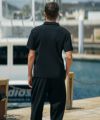 ポロシャツにはボタンが4つ付いていますが、 スキッパーシルエットなので、ボタンを留めずに着るか、 一番下のみ留めるのが着こなしのポイント。 胸元の美しいラインで色気を演出します。