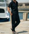 上品さとリラックス感を兼ね備えた、プリーツポロシャツ &プリーツロングパンツのセットアップ。 しっとりと肌になじむ落ち感のある生地は、 シワになりにくくお手入れも簡単です。