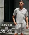 [Lサイズ]を着用しました 他コーデは【コチラ】 ポロシャツは着丈がお尻6分あたりで、袖丈は肘上指4本分あたりです。胸やおなか周り、肩周りに窮屈感はありません。ショーツの丈は膝上指2本分あたりで、ウエストは拳一つ半の余裕があります。太もも周りに程よく余裕はありました。Mサイズだと若干タイトな感じになるので、Lサイズをおすすめします。