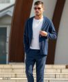 [Lサイズ]を着用しました 他コーデは【コチラ】 少し余裕のあるサイズ感でした。カーデの着丈はお尻が完全に隠れ、袖丈は手の甲に少しかかるあたりです。胸周りにも余裕があり、全体的にリラックス感のある着用感でした。パンツの丈はくるぶしが隠れるあたりで、ウエストは拳一つ半以上の余裕があります。太ももやふくらはぎ周りにも余裕があります。細身な方は、Mサイズの方がピシッとカッコよく着こなせます。