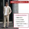 リネンのような軽やかで品のある質感が特徴のリネンライクセットアップと抜群のストレッチ性が嬉しいスーパーストレッチシャツのコーデセット。 ベージュとホワイトで纏めた着こなしは都会の大人な雰囲気を漂わせ、ラフながらも綺麗めな印象を与えます。