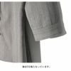 縦のストライプ柄が特徴的な バンドカラーの7分袖シャツと テーパードスラックスのセットアップ。