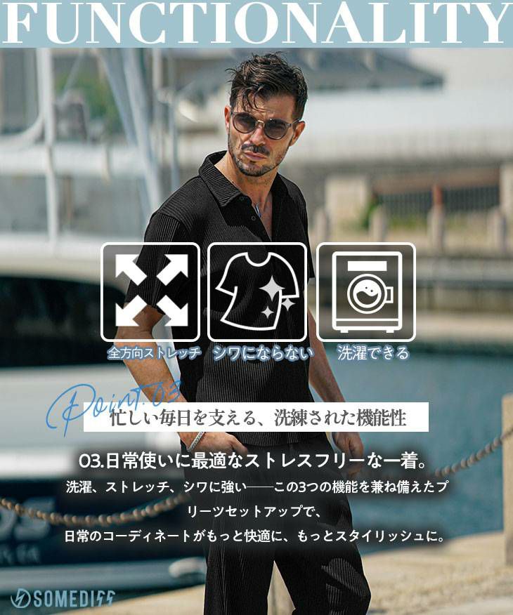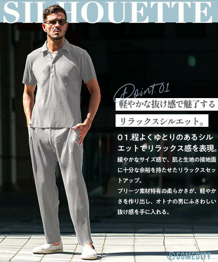 セットアップというのは上下が揃っているアイテムのことで、スーツなどがそれにあたります。