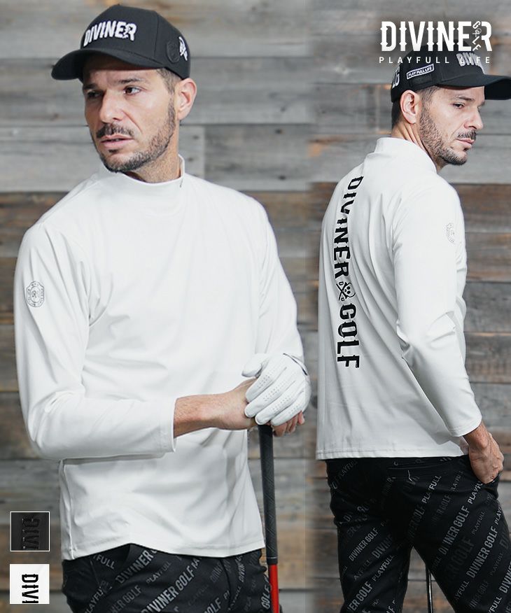 DIVINER GOLFの無地ストレッチモックネックロンT。
