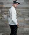 バックの光沢感のあるロゴプリントが、 まるでクールなシグネチャーのように背中で輝き、 シンプルでありながらも洗練された印象を与えます。