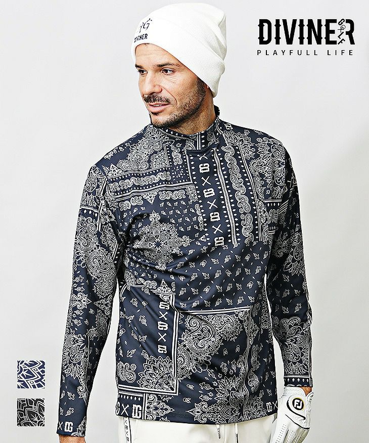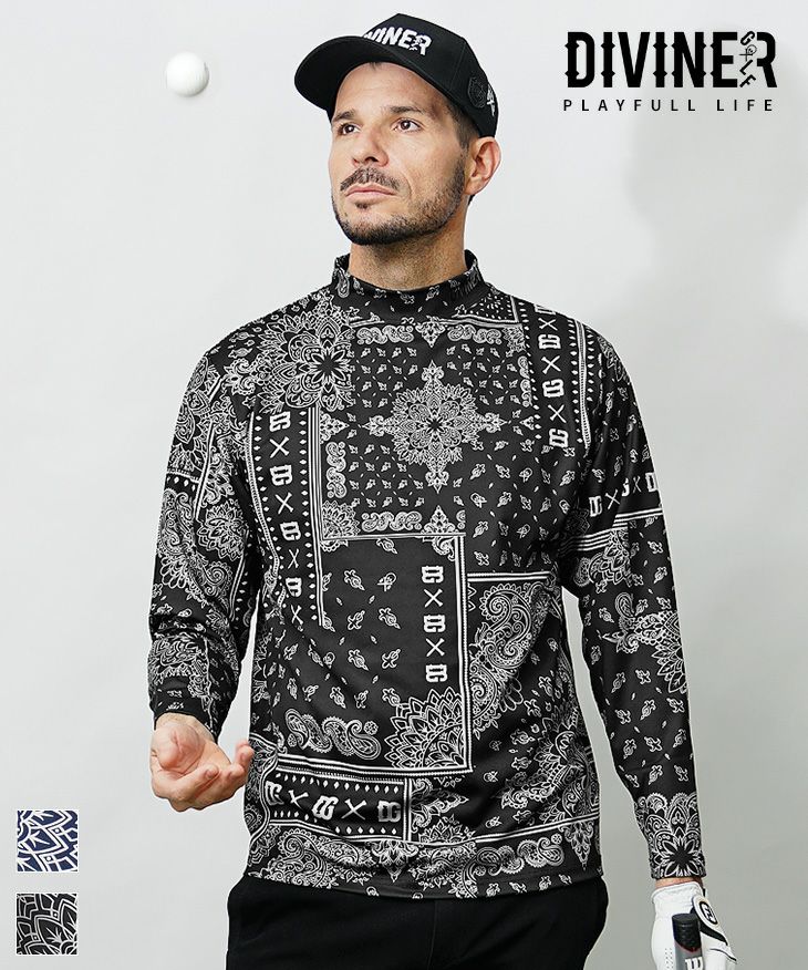 DIVINER GOLFのペイズリー柄 ストレッチモックネックロンT。
