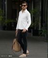 [Mサイズ]を着用しました 他コーデは【コチラ】 やや余裕のあるサイズ感ではありますが、程よく体にフィットするので、体のラインがキレイに見えてカッコいいです。素材が柔らかいので着心地がいいです。
