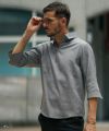 全体のシルエットはややゆったりめで、身体のラインを拾わず、 着るだけで自然なこなれ感が漂います。 7分丈の袖は、手首をすっきり見せつつ、程よく日差しをカット。 また、この袖は丸みを帯びたカッティングに加え、 サイドにはスリット入り。 動きやすさに配慮しつつ、横から見たときにも立体的で バランスの良いシルエットに仕上げています。