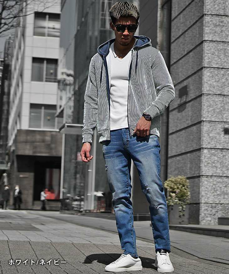 SOMEDIFF/サムディフ サイドラインスラブデニム切替パーカー