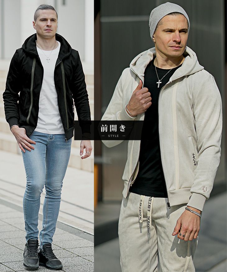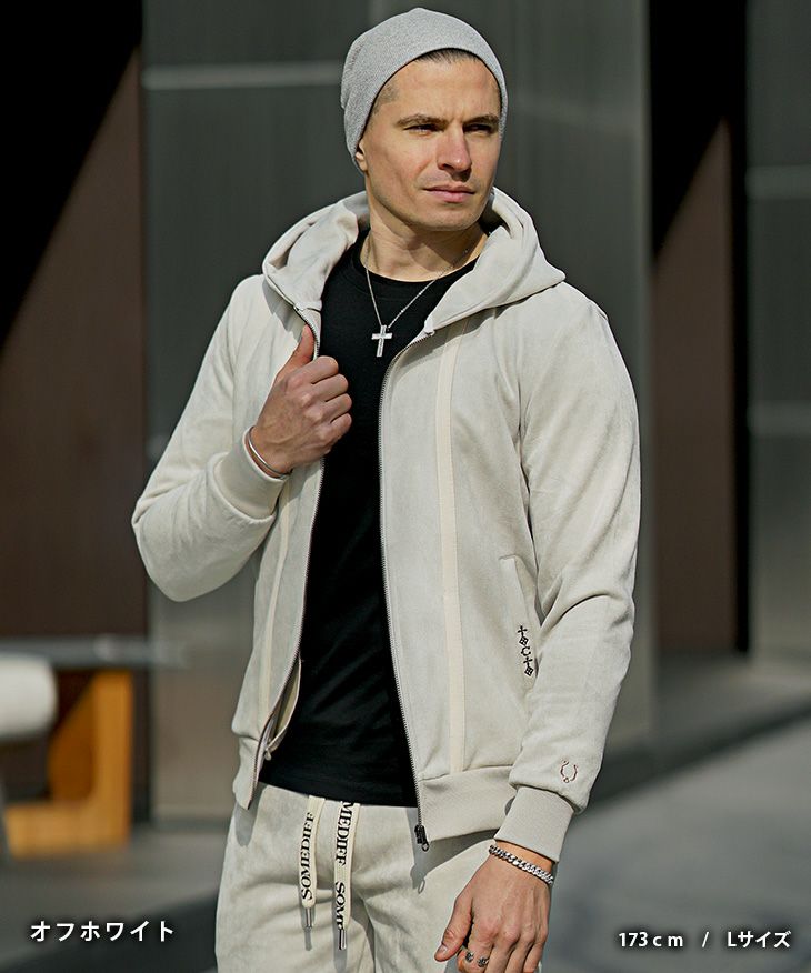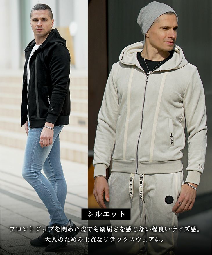SOMEDIFF/サムディフ 【送料無料】フェイクスウェードラインフルジップパーカー