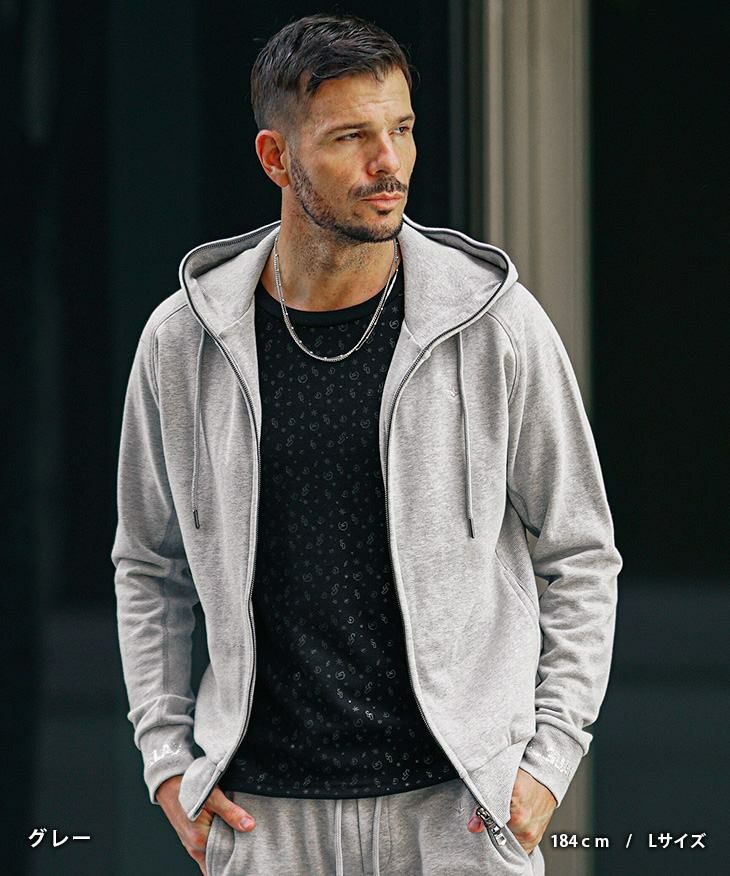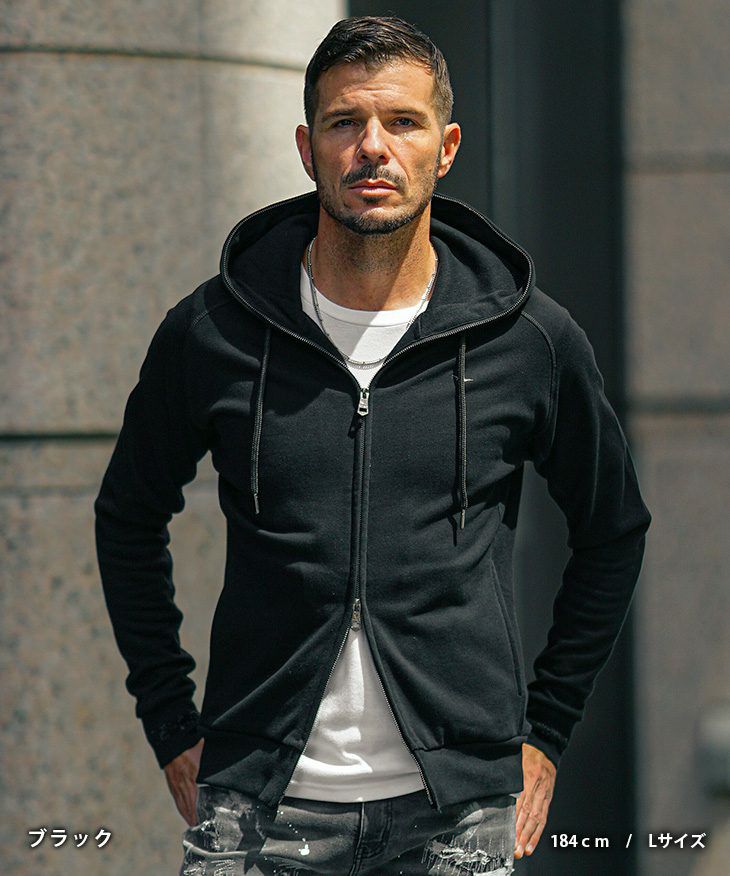 1PIU1UGUALE3 RELAX ラインストーンカフスウェットジップパーカー/1PIU1UGUALE3 RELAX
