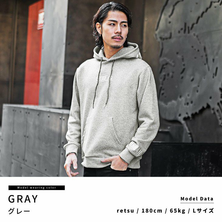 [Lサイズ]を着用しました 他コーデは【コチラ】 薄手のロンTを着用した状態で、ジャストなサイズ感でした。僕のような筋肉質体型の方だと、胸囲や肩幅がピッタリすると思いますが、窮屈感はあまり感じませんでした。生地がしっかりしているので、フードが綺麗に立ってカッコ良いです!