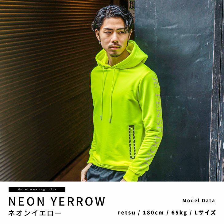 ネオンピンクとネオンイエローの 2色展開で、遊び心を詰め込んだ イケイケな派手色パーカー。