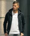 袖口にブランドロゴをラインストーンであしらった ジップアップフーディー。 動くたびにきらりと煌めく輝きが、 大人の遊び心を掻き立てます。