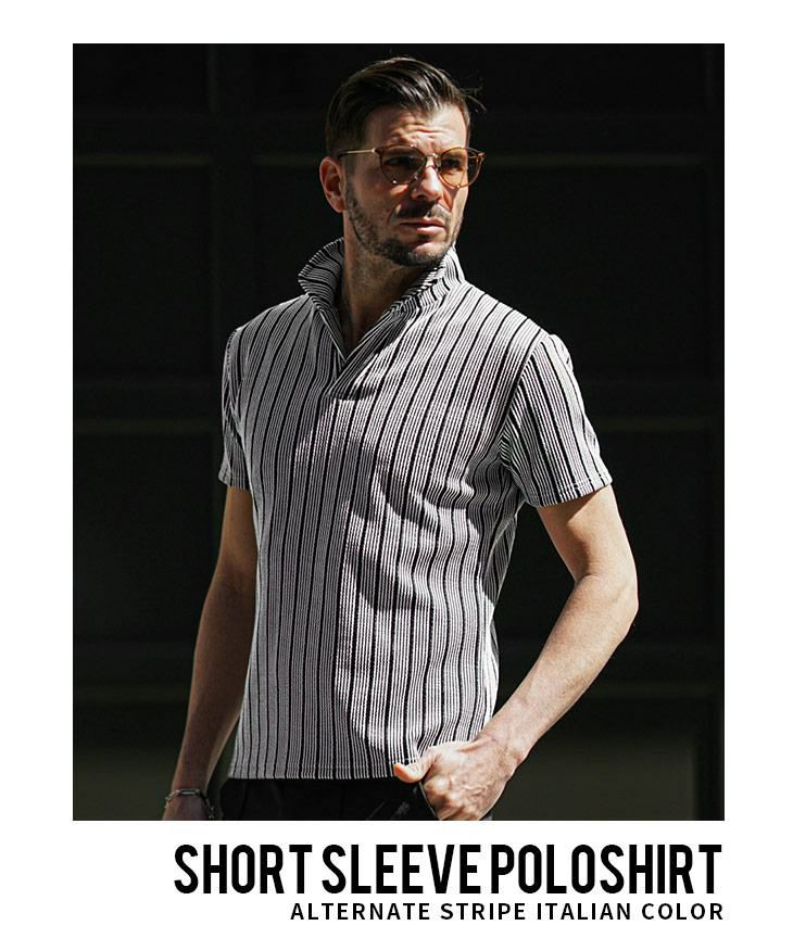 オルタネートストライプイタリアンカラー半袖ポロシャツ
