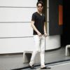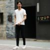 [Lサイズ]を着用しました 他コーデは【コチラ】 ちょうど良いサイズ感でした。着丈はお尻半分あたりで、袖丈は力こぶが半分隠れるあたりです。肩幅がちょうど良く、全体的にスリムフィットな着用感ですので、MサイズではなくLサイズでの着用をおすすめします。