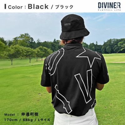 DIVINERの文字を 服全体に散りばめ 遊び心溢れる1着。