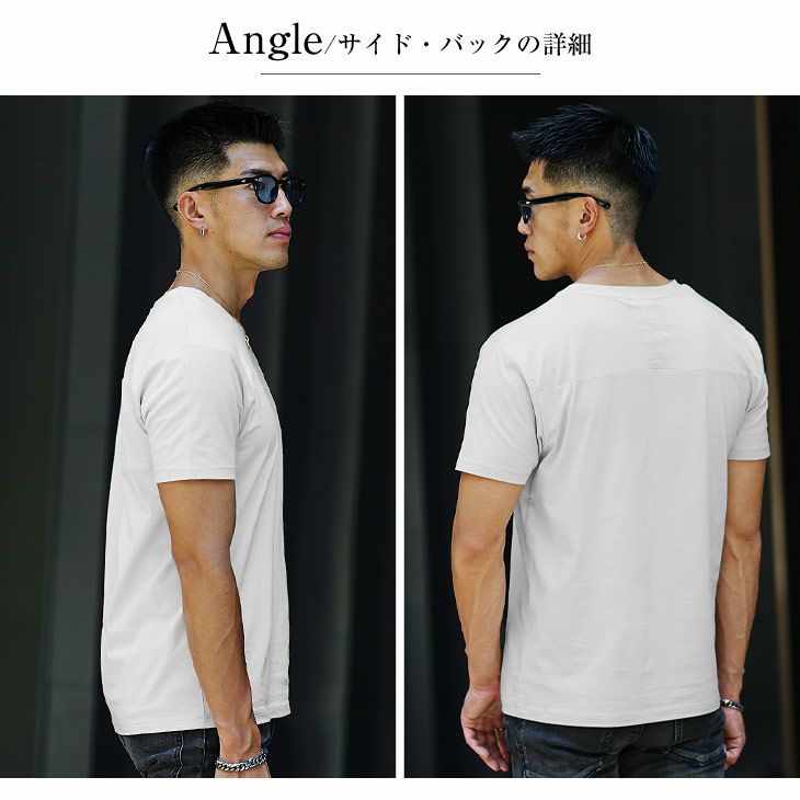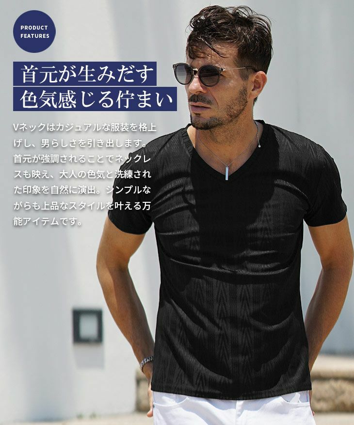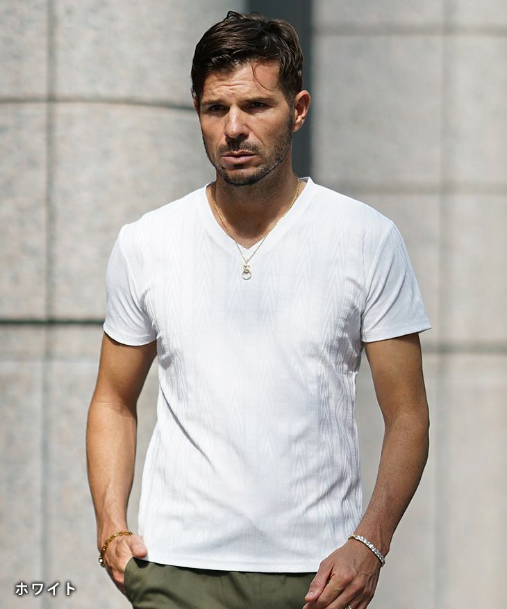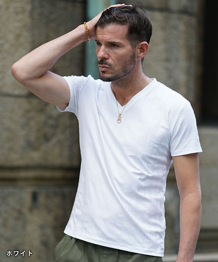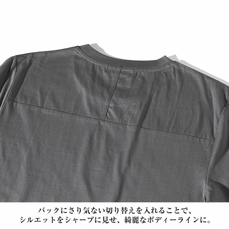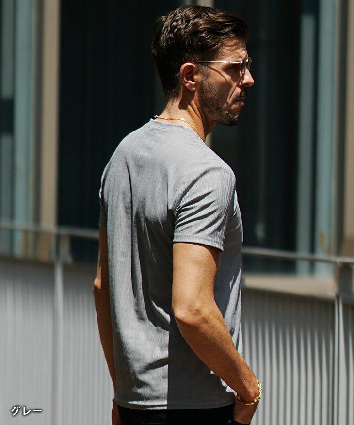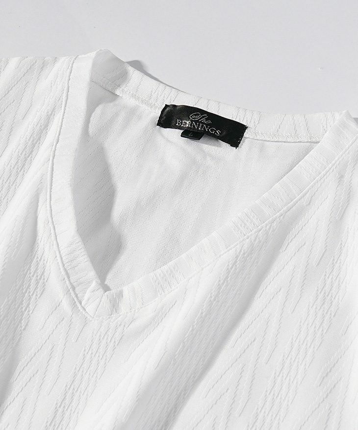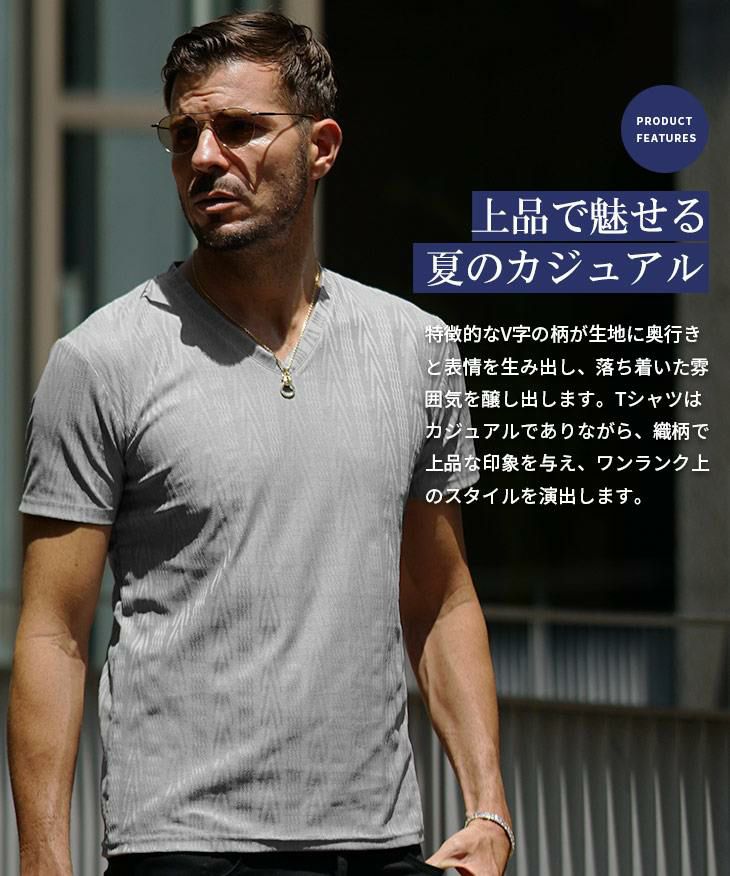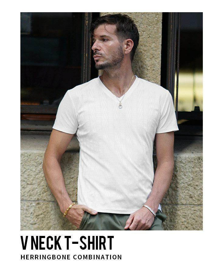 ヘリンボーンコンビ半袖VネックTシャツ