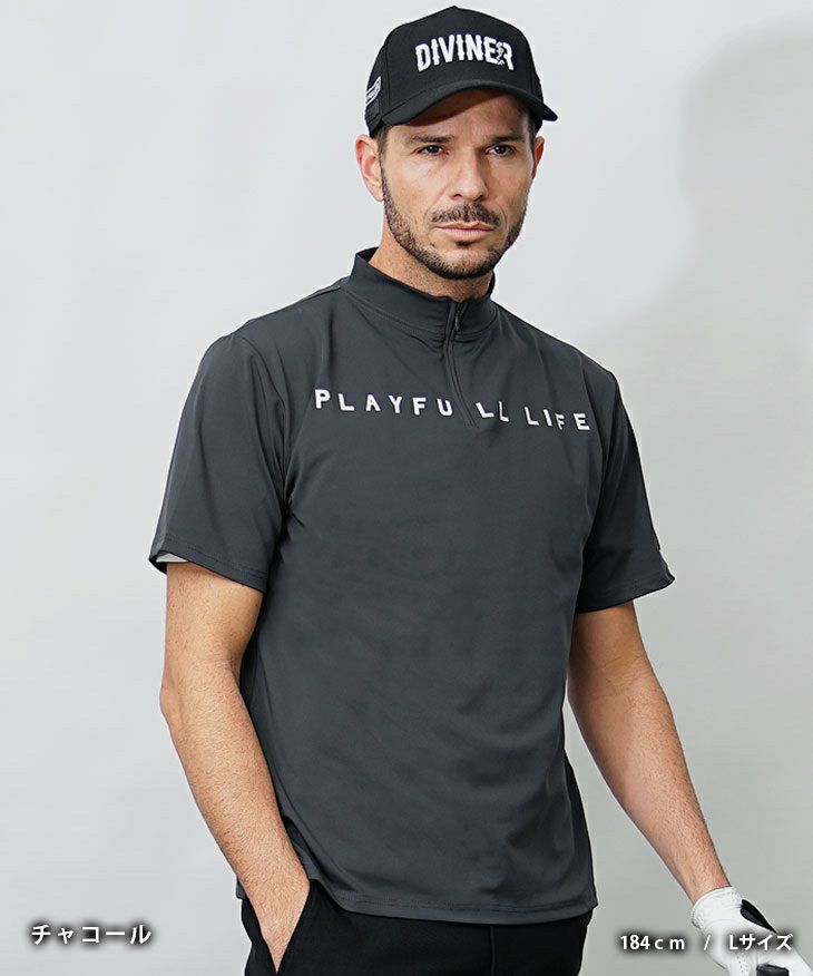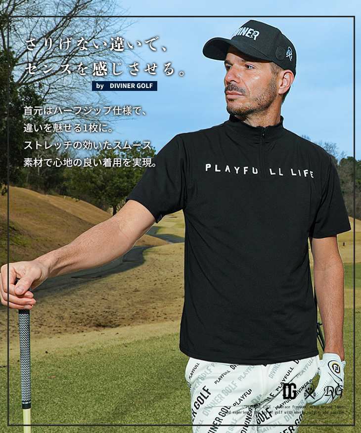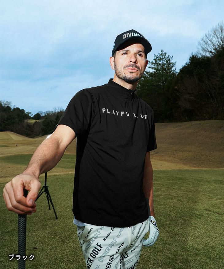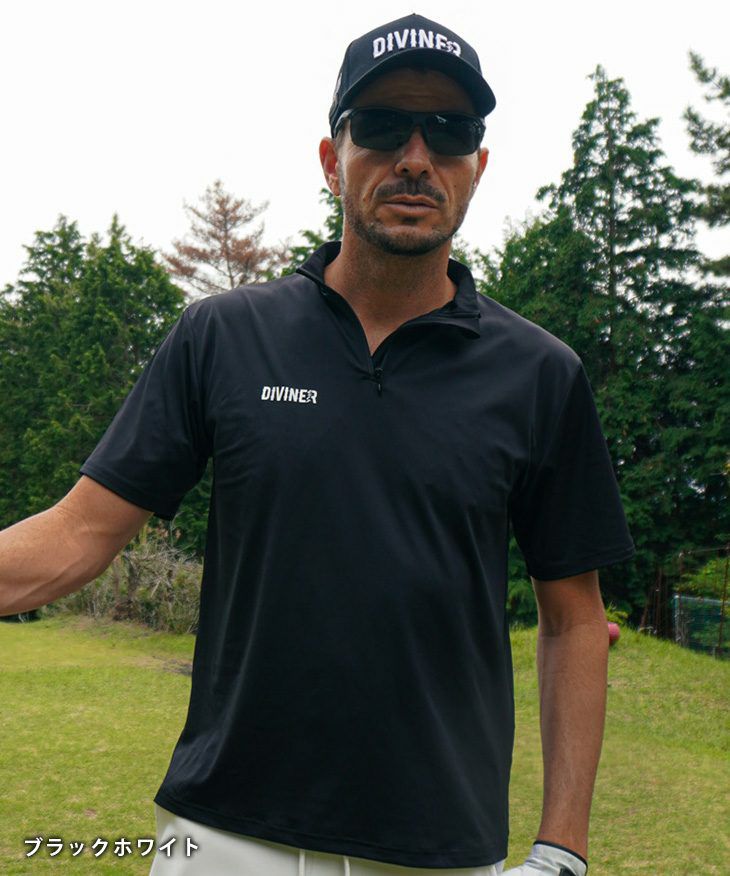 【DIVINER GOLF】バックラインハーフジップ半袖モックネック