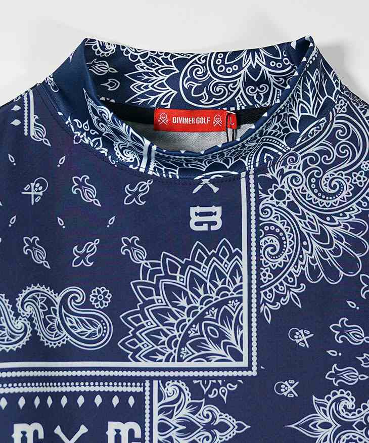 【DIVINER GOLF】ペイズリー柄半袖モックネックTシャツ
