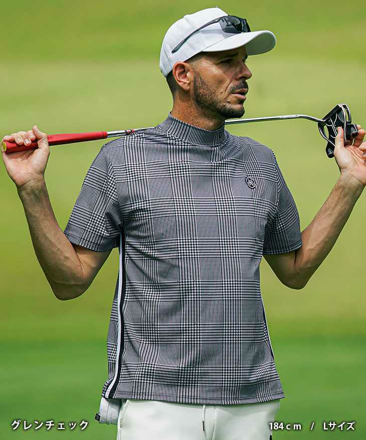 【DIVINER GOLF】チドリ・チェック柄半袖モックネック