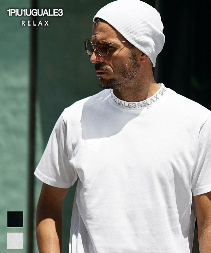 襟ラインストーンTシャツ/1PIU1UGUALE3 RELAX