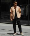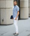 [Mサイズ]を着用しました 他コーデは【コチラ】 肩幅がピッタリで、着丈はお尻にかかる長さです。生地がしっかりしており、伸縮性はありませんが窮屈感はなく、快適に着用できます。涼しげな風合いと合わせて、これからの季節にぴったりの一枚です。少しゆとりをもって着用したい方はLサイズがオススメです。