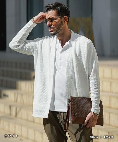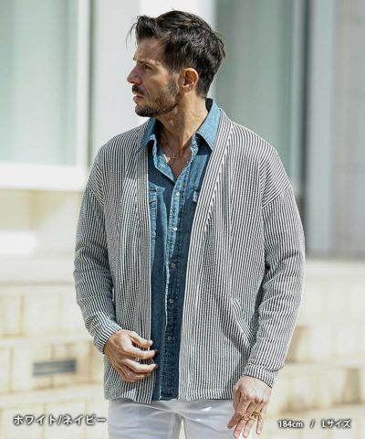 シアサッカー素材で軽快に纏う ボタンレスカーディガン。