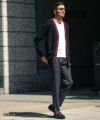 アクリルと綿を使用した生地は 伸縮性と着心地の良さが特徴的。 ゆったりしたサイズ感と卓越した素材が 窮屈感のないストレスフリーな着心地を楽しめる。