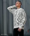 クルーネックのニットに ブランドロゴである「SOMEDIFF」を 散りばめ、存在感のある一着に。