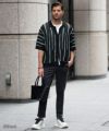[Mサイズ]を着用しました 他コーデは【コチラ】 程よく余裕のあるサイズ感でした。着丈はお尻7分ほどが隠れ、袖丈は肘上指4本分あたりです。程よくリラックス感のある着こなしを楽しめます。Lサイズだとオーバーでルーズな着こなしに仕上がります。同じような体型の方はMサイズで良いと思います。