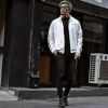 [Lサイズ]を着用しました 他コーデは【コチラ】 程よくゆとりのあるサイズ感でした。着丈はお尻がほとんど隠れ、袖丈は手首よりほんの少し長めです。フロントジップを閉めても窮屈感はないので、薄手のトレーナーまでならインナーに着用できます。Mサイズだとフィット感を楽しめ、Lサイズだと少しストリートな着こなしになります。