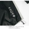 襟の内側とバックの右裾に5つのブランドアイコンを それぞれラバープリントとメタルプリントで配置。 さらに左の胸、腕部分にSOMEDIFFの文字を 同じくラバープリントでデザインし、 存在感のある一枚着に。