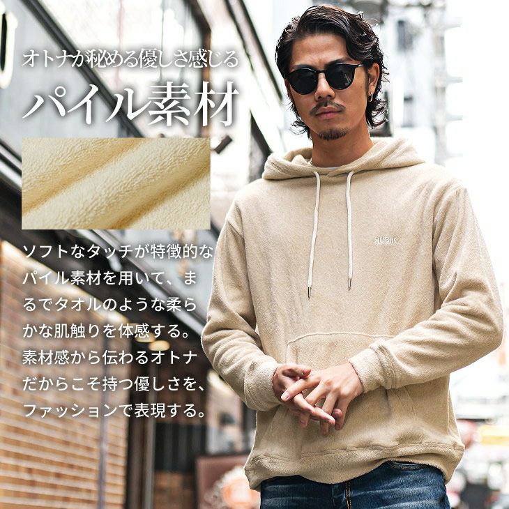 素材で魅せるオトナの余裕『パイルプルオーバーパーカー』