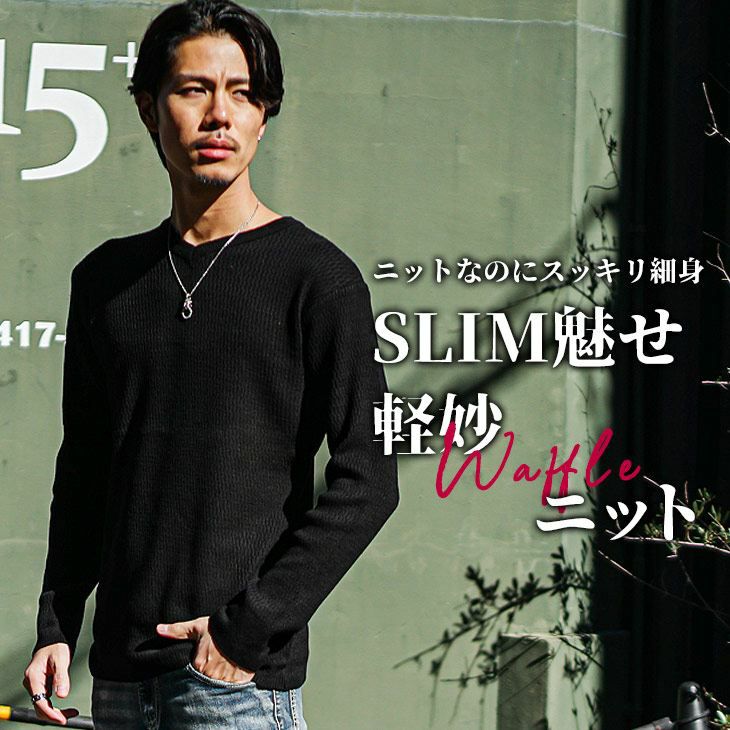 ライスワッフルVネックニット