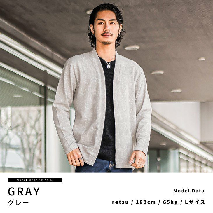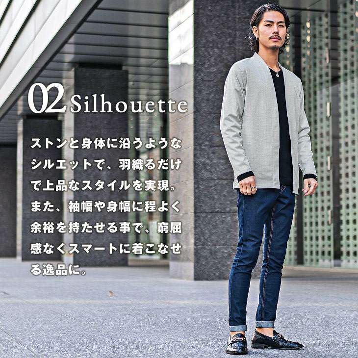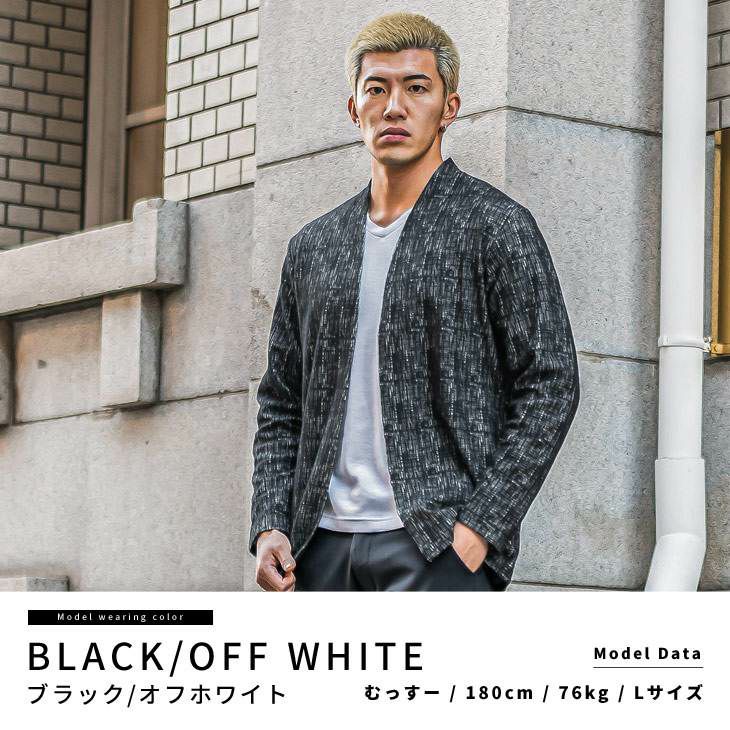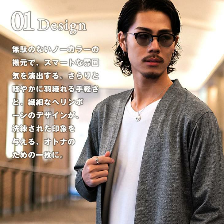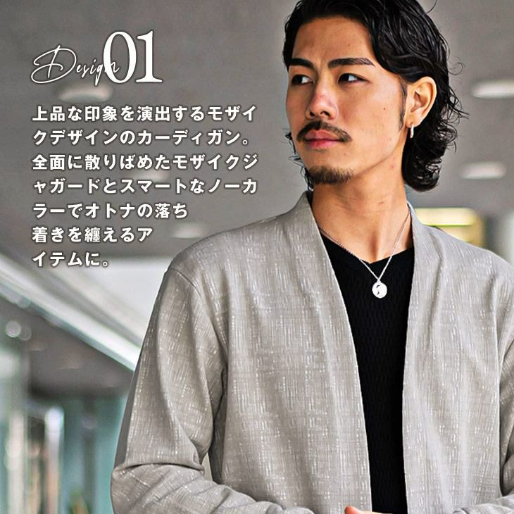 こだわりを品よく羽織る『モザイクジャガードノーカラーカーデ』