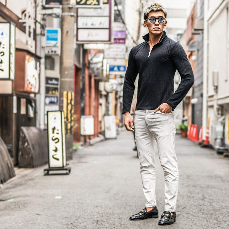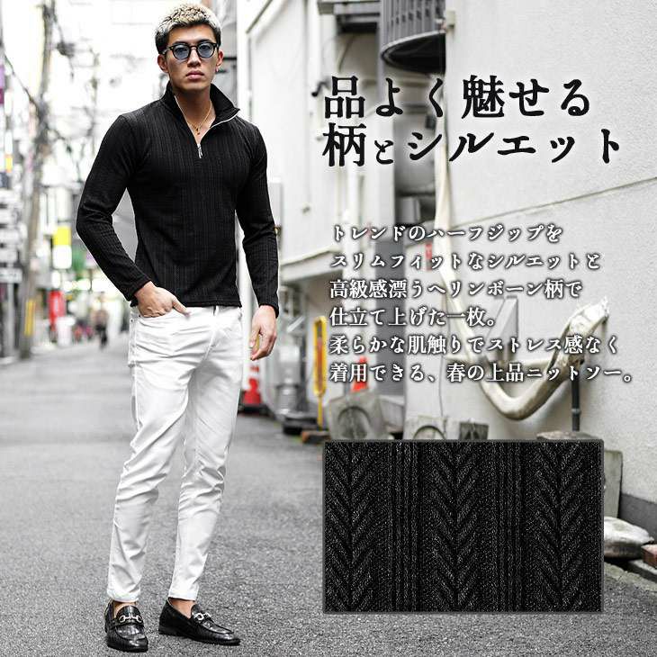 トレンドを品よく着こなす『ヘリンボーンハーフZIPニットソー』