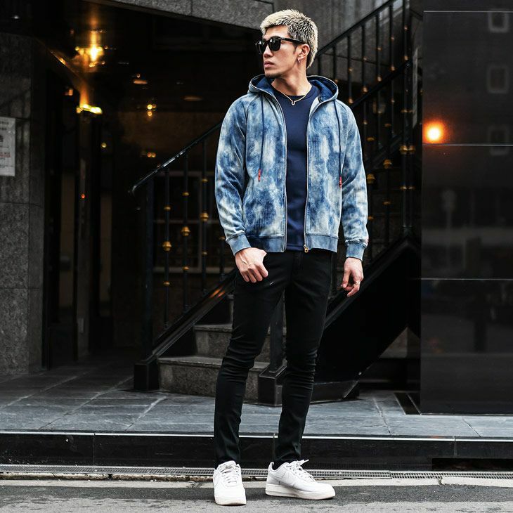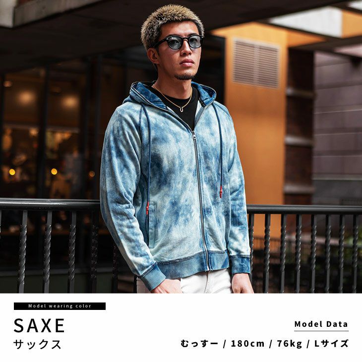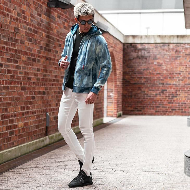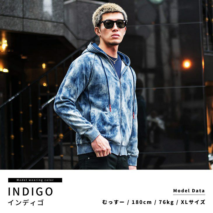 刺激的な存在感を纏う『総柄タイダイブリーチZIPパーカー』