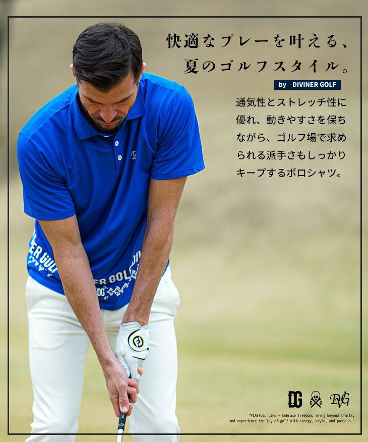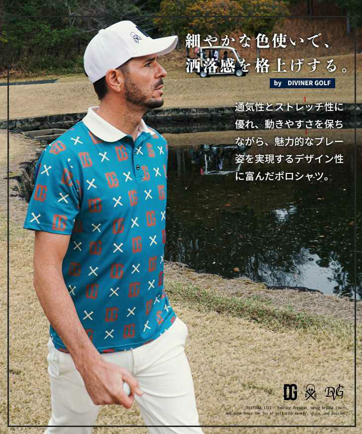 【DIVINER GOLF】サイドプリント半袖ポロシャツ