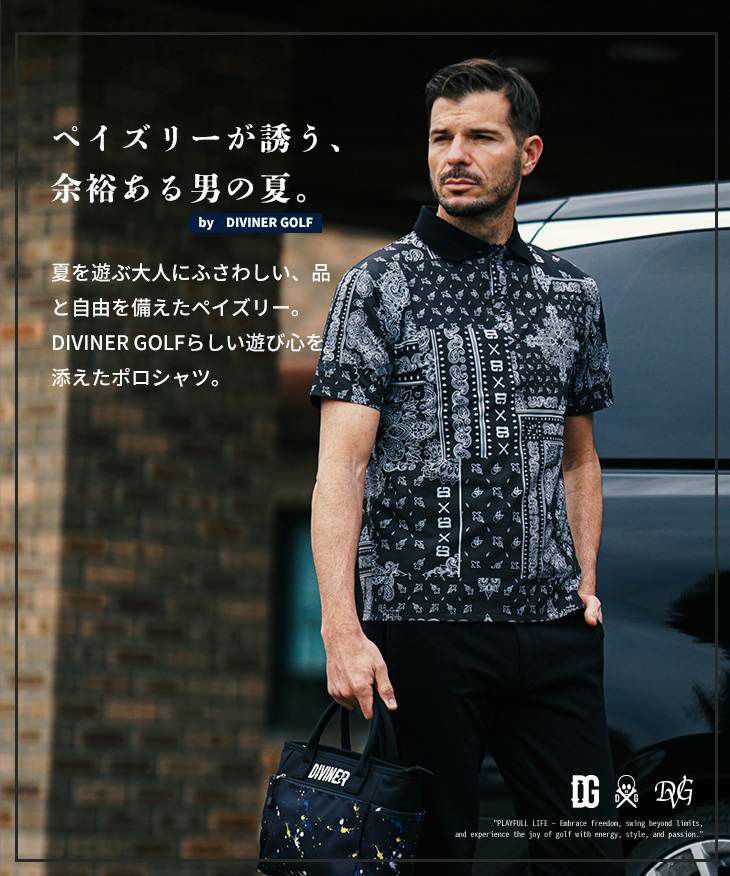 【DIVINER GOLF】ペイズリー柄半袖ポロシャツ