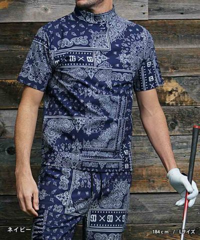 【DIVINER GOLF】ペイズリー柄半袖モックネックTシャツ