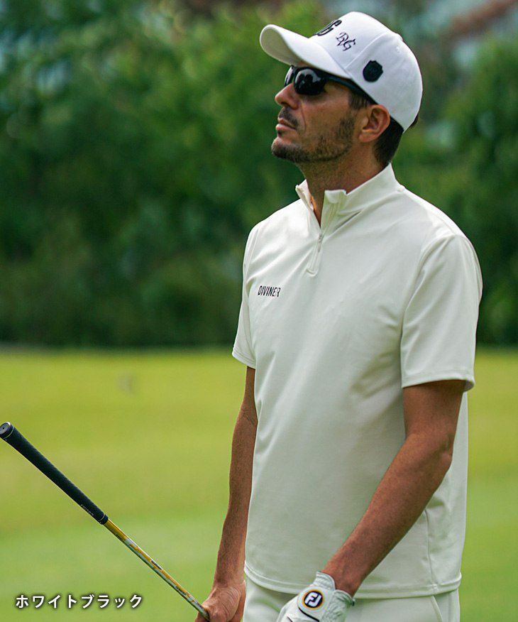 【DIVINER GOLF】バックラインハーフジップ半袖モックネック