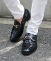 クロコ革をデザインした高級感あふれるローファー。 艶感のある素材と、ゴールドのホースビットを配置することで、 足元から品が溢れ出す一品。