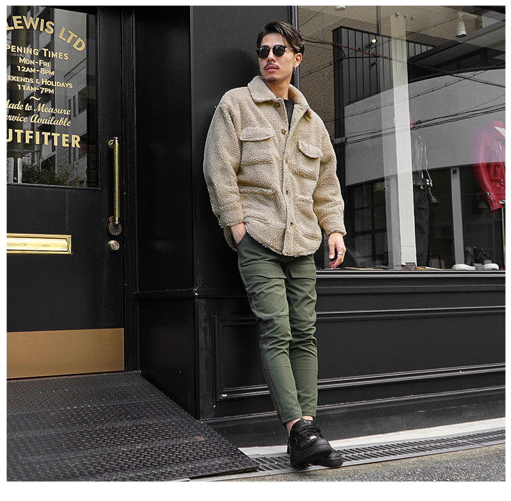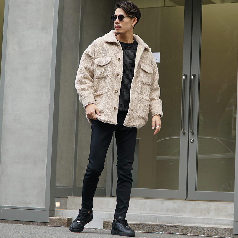 さらにボアはカジュアルアイテムなので、CPOジャケットをボア素材にすることで、より一層カジュアル感の強いコーデを楽しむことができます。
