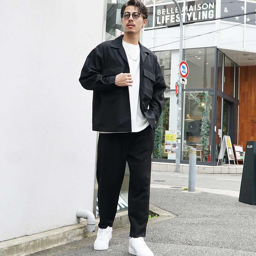 最近はパンツもゆったりしたものを選ぶ人が多いですが、大き目のジャケットに合わせるなら、スキニーパンツの方がコーデがまとまって見えるのでオススメですよ!