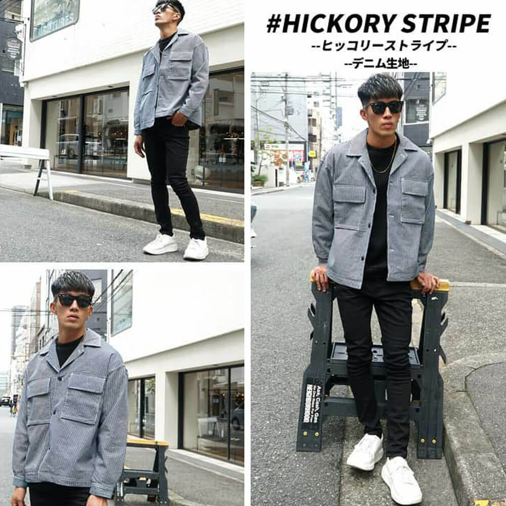ヒッコリーストライプでワーク系やストリート系に合わせやすく、大きめのサイジングなので、インナーに厚手のものを採用し、重ね着をすることで、寒い冬にも大活躍!