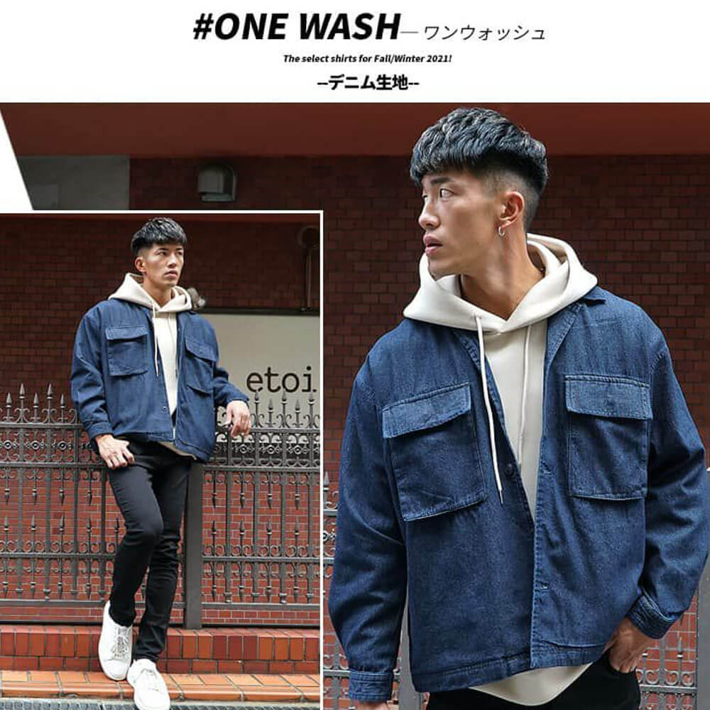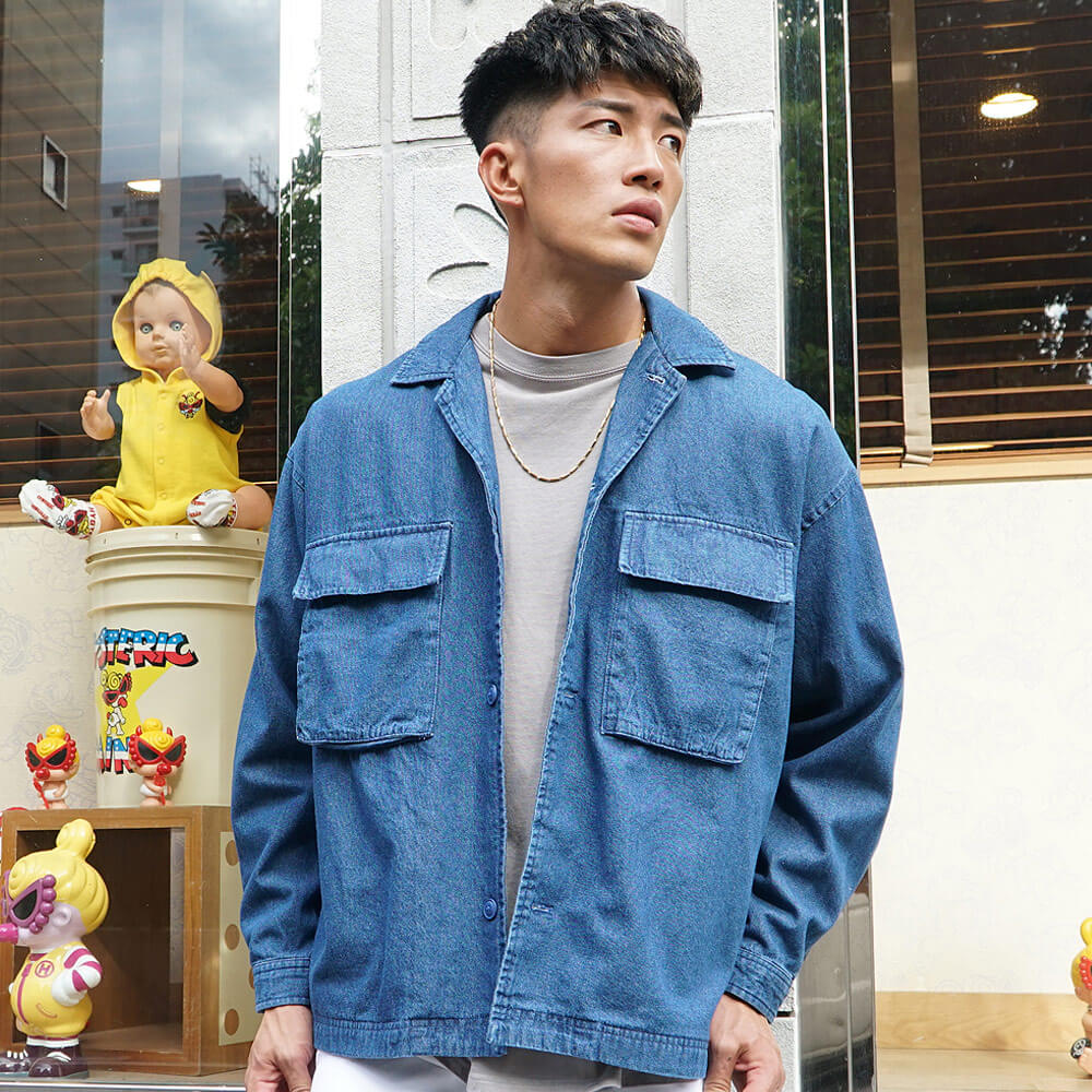 ゆったりとしたシルエットが特徴のオーバーサイズタイプのシャツジャケットの一種で、アウターのように羽織って着ることが出来る、ゆったりしたシルエットのシャツのことです。一般的には胸に大きなフラップポケットがついているのが特徴です。